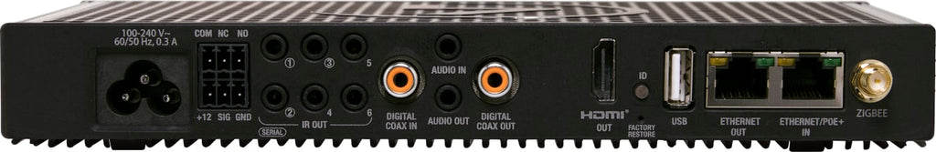 The EA-3 includes a variety of I/O to automate audio and video, lighting, climate control, door locks, and other devices controlled by IP, infrared (IR), serial, and Zigbee. With PoE+ for power, a port for Ethernet out, and its optional mounting bracket, the compact form factor of the EA-3 makes it easy to install behind any TV or projector.